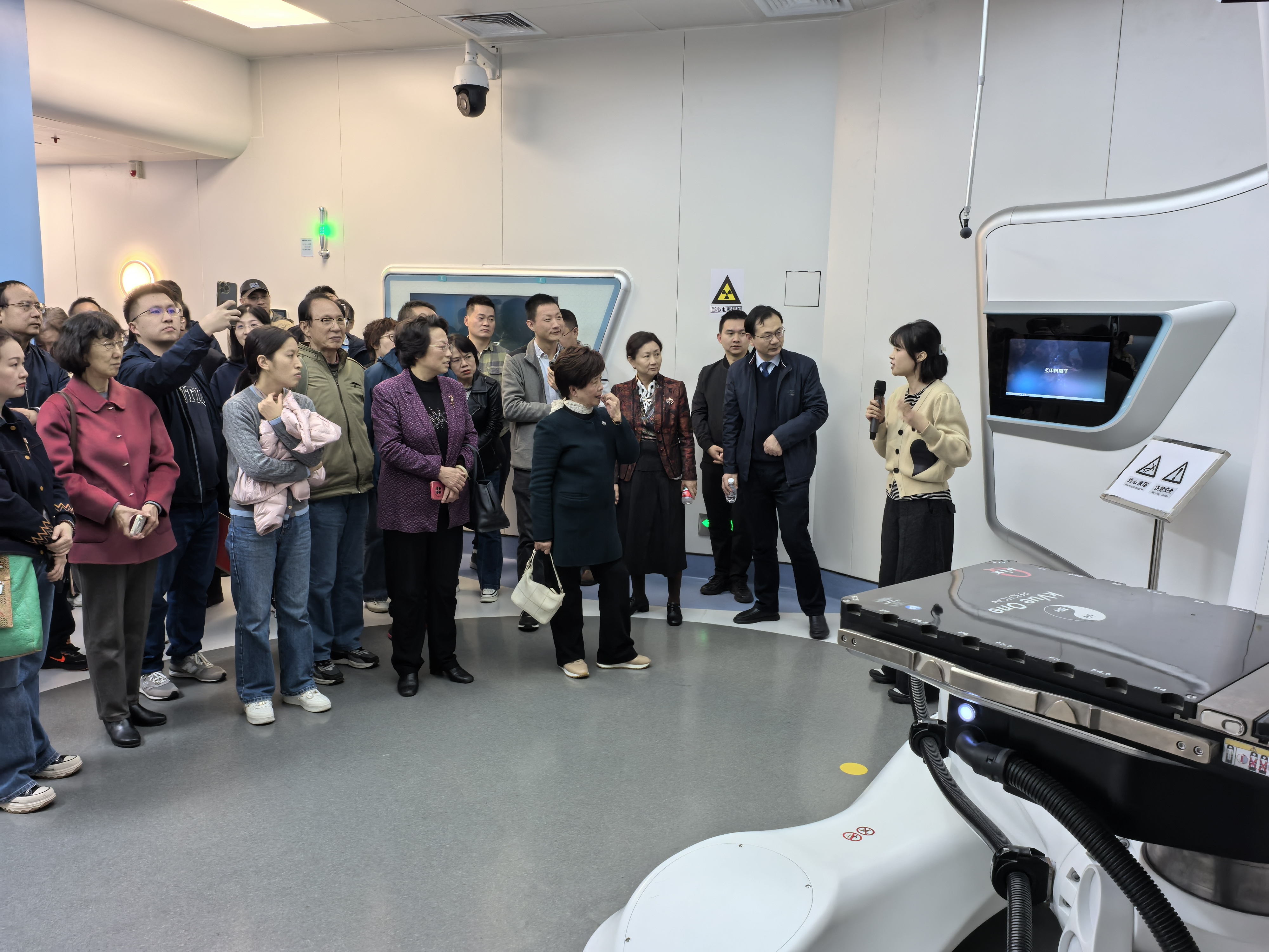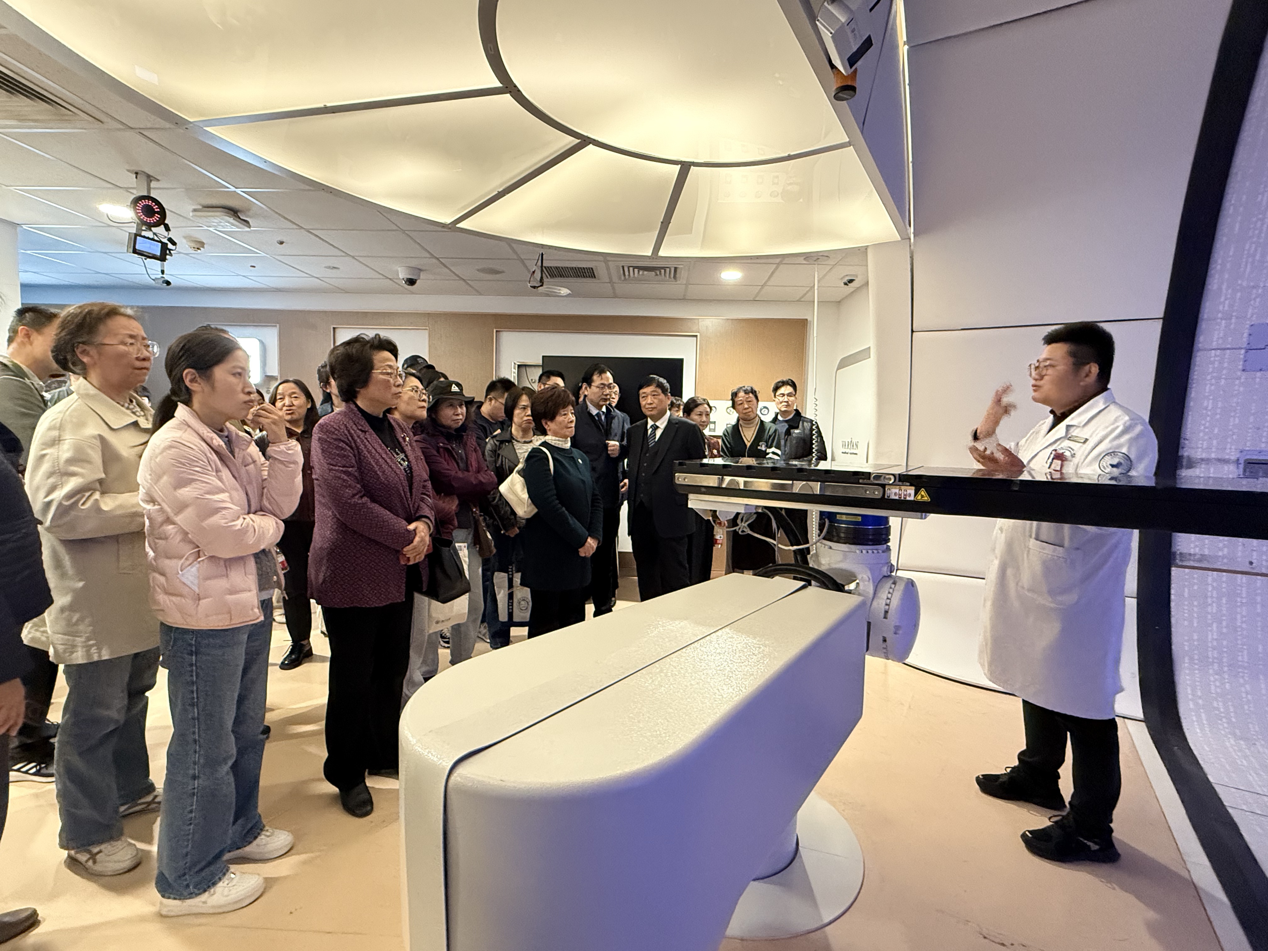 活动现场,中国科大附一院离子医学中心亚专科主任周涛从质子重离子中心的建设发展、中国科大附一院离子医学中心的发展历程及现有团队情况、质子治疗的临床应用等方面为大家作了详细介绍。随后,大家集体参观了医学中心一期进口质子旋转束治疗室和二期国产自研质子治疗系统。
