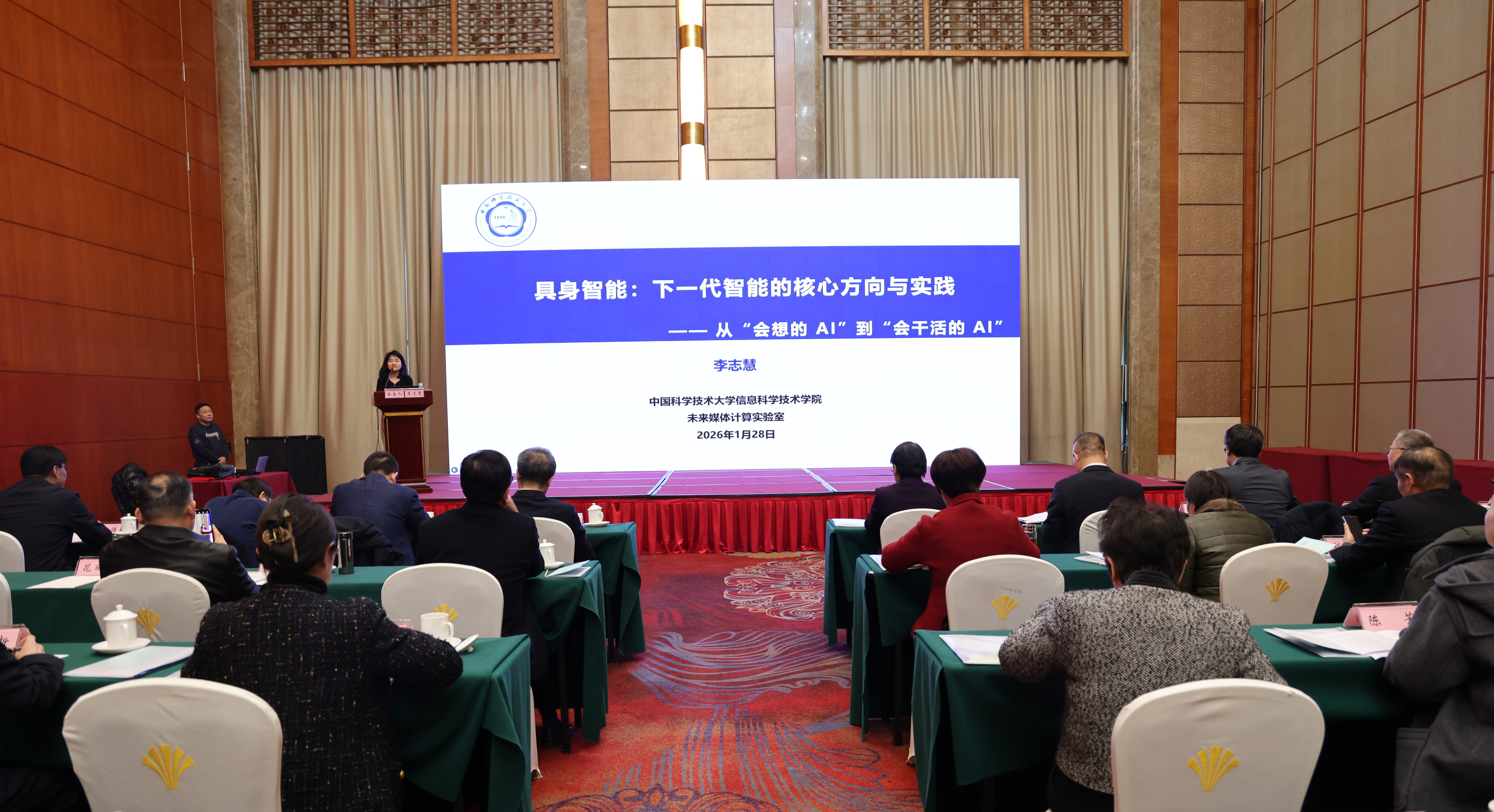 1月28日,九三学社安徽省第十二届委员会第七次全体(扩大)会议在合肥召开,我基层委第二支委会委员、中国科学技术大学信息科学技术学院特任教授、博士生导师李志慧应邀在科学报告会上作主题为“具身智能:下一代智能的核心方向与实践”的报告。